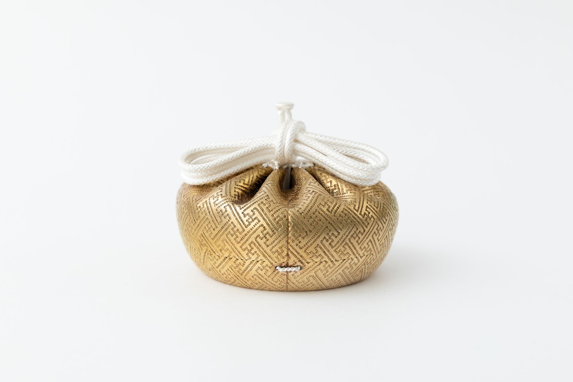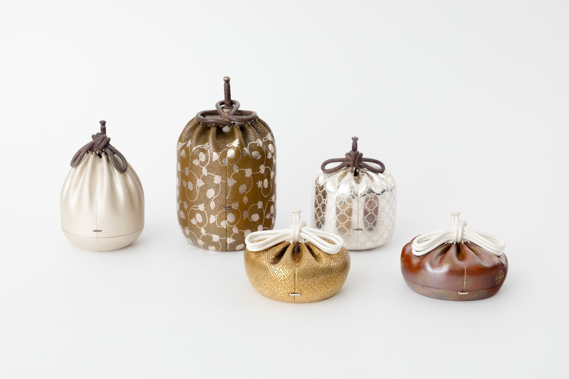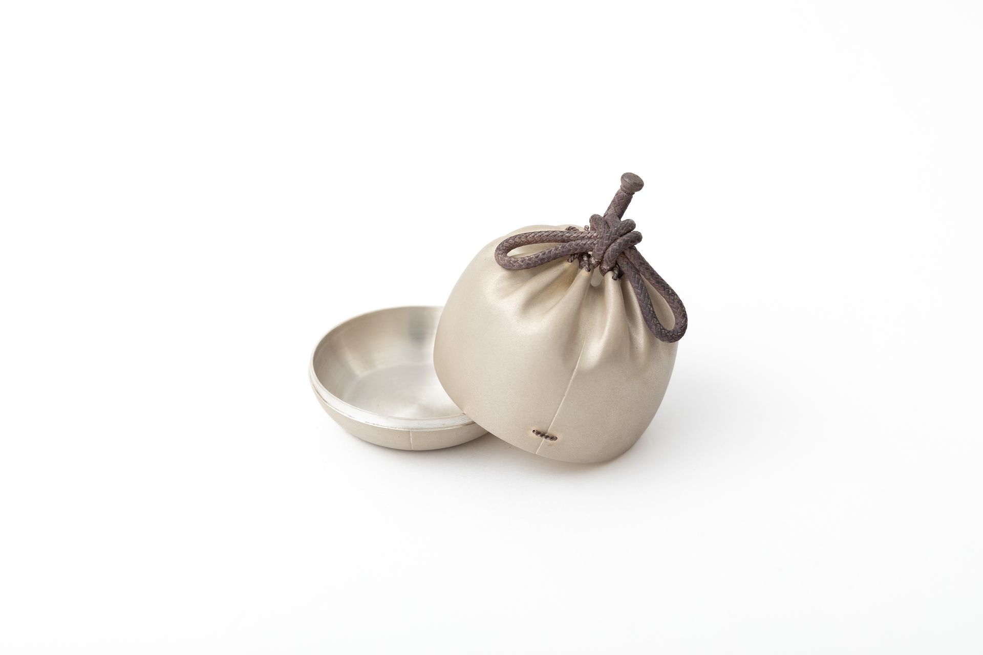 Part of a series of works using various rarefied metal-working techniques to create tea caddies for the Way of Tea that mimic intricate silk weaving processes.