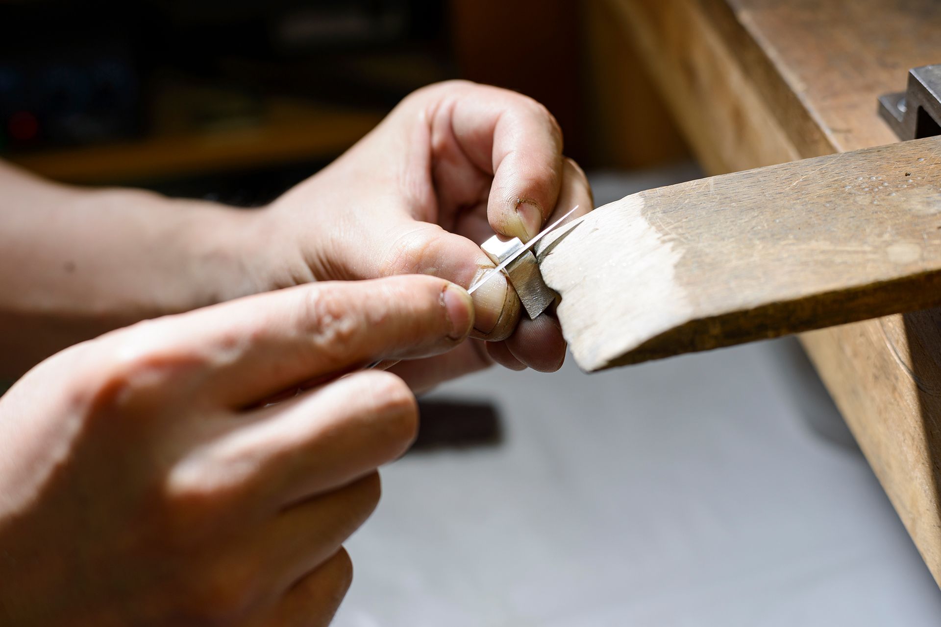 · Mokumegane produces a pattern similar to wood grain by manipulating welded layers of different metals through hammering, forging, and carving.