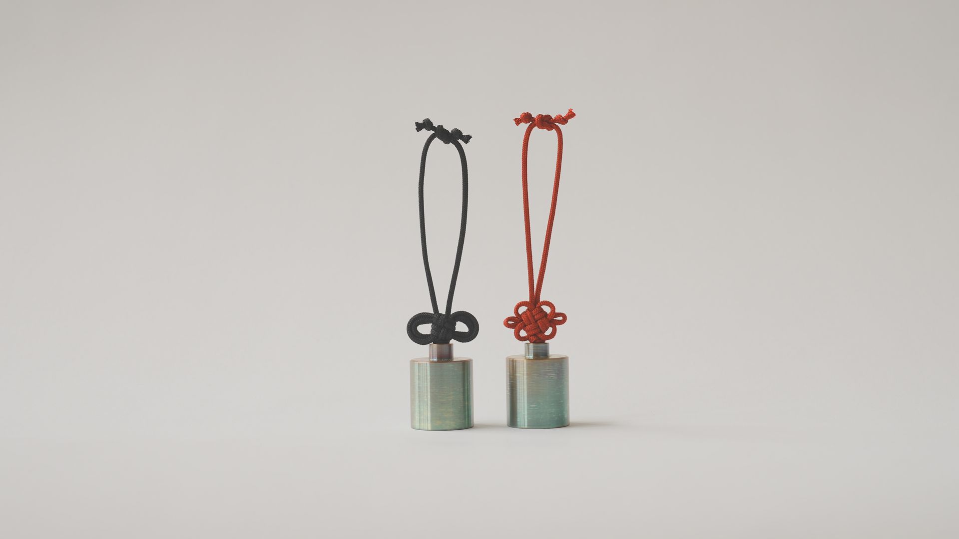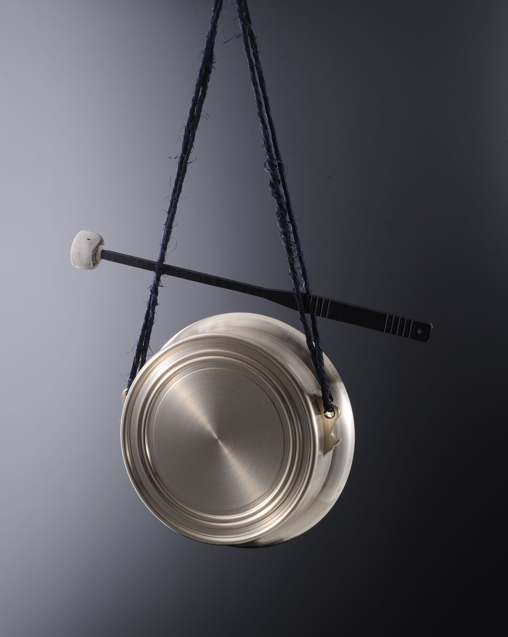 This small hanging bell is cast from *Sahari*, a type of bronze alloy with a high tin content. Compared to standard bronze, the increased tin creates a clearer tone and a beautifully sustained reverberation. The hanging cord is made from Kyoto-braided silk and is individually tied using traditional knotting techniques.